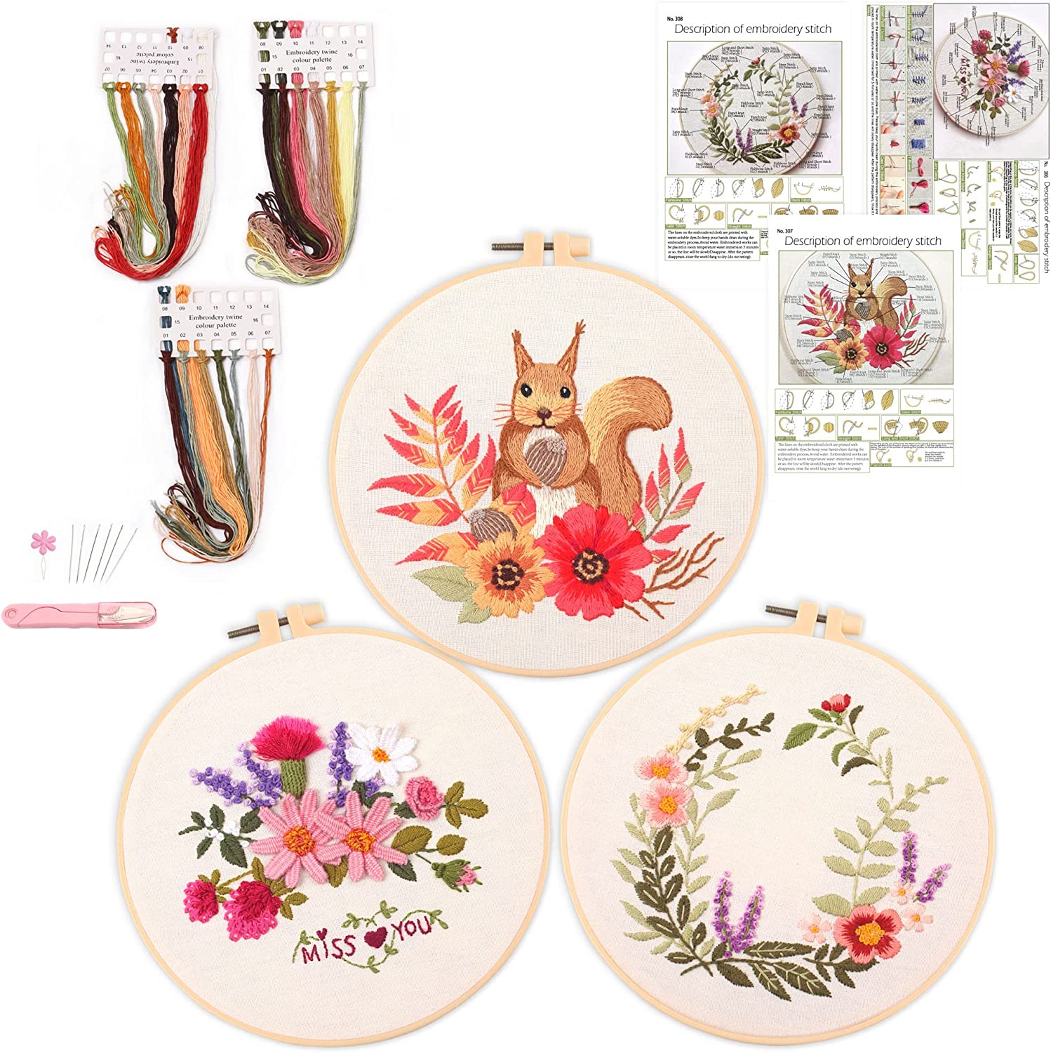 3 Sets Embroidery Starter Kit With Pattern And Instructions Cross Stitch Kits Including Stamped Embroidery Cloth With 1 Embroidery Hoops Color Threads And Embroidery Kits Walmart Com